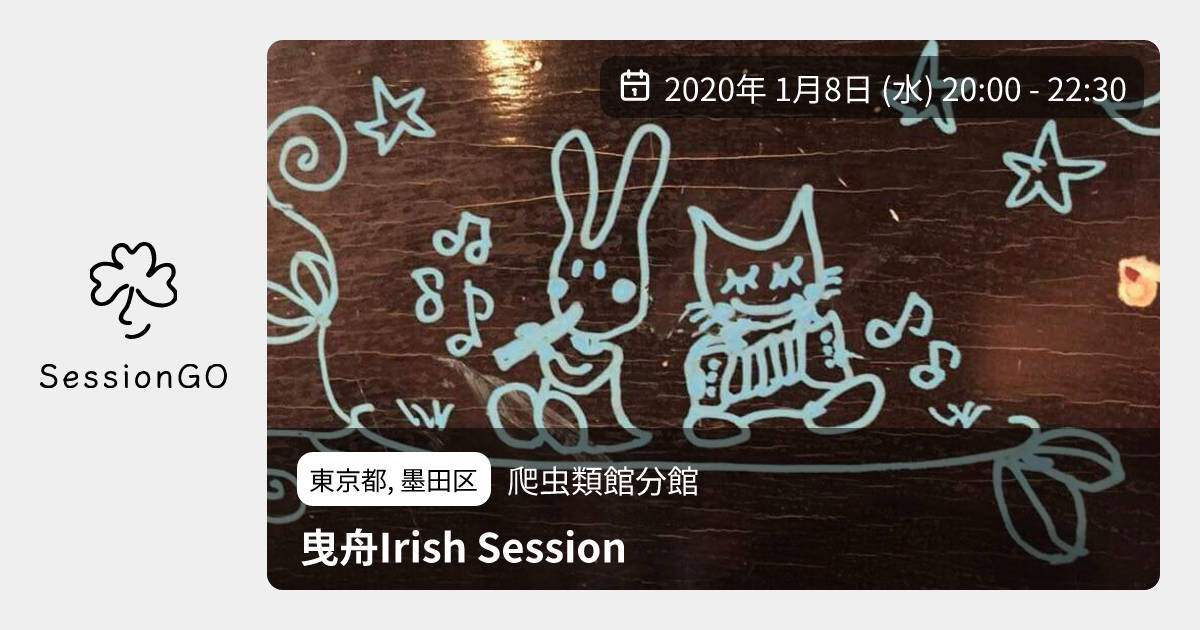 東京都, 墨田区爬虫類館分館曳舟Irish Session2020年1月8日(水)終了11:00 - 13:30東京都墨田区京島3丁目19−3主催者:たなかさん/おかもとさん🔰 初心者歓迎🚭 開催場所が禁煙今月もひっそりとやります。 ごはん用意するので食べていってください イベント内容をコピーして新規投稿※閉店・移転などにより、正常に表示されない場合があります