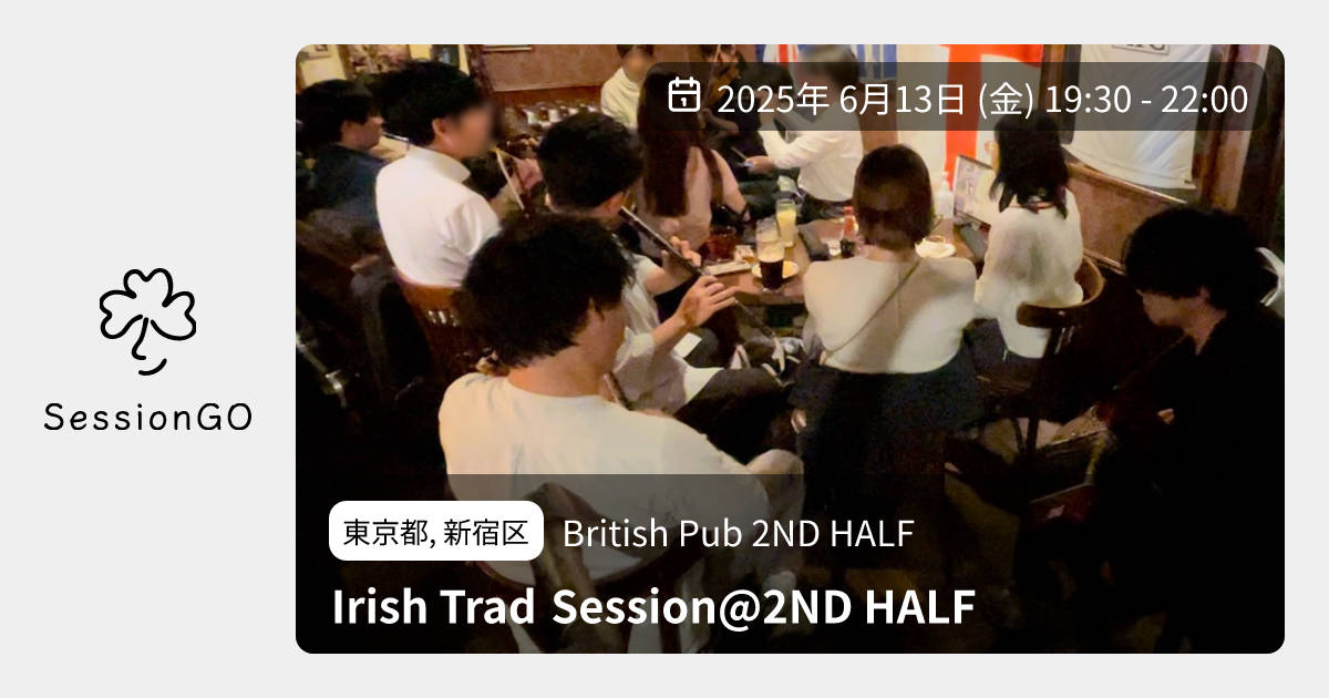 アイリッシュが中心のトラッドセッションです! 参加費は無料ですが、1人あたり2オーダー以上の注文をお願いします。酒もご飯も美味しいお店です。 席数に制限があるため、参加希望の方は早めにお申し込みください。 店内にギターと電子ピアノもありますので、伴奏の方も気軽にご参加ください。 ## ホスト かまわぬ: フルート まさと: コンサティーナ