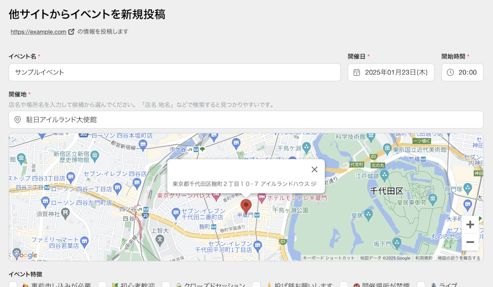 他のサイトに掲載されたイベントも投稿できるようになりました