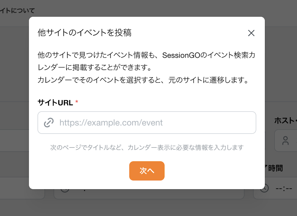 - SessionGOのイベント投稿画面でURLを入力し、イベント情報を入力。(解析・自動入力された場合はその内容が正しいか、必ずご確認ください)