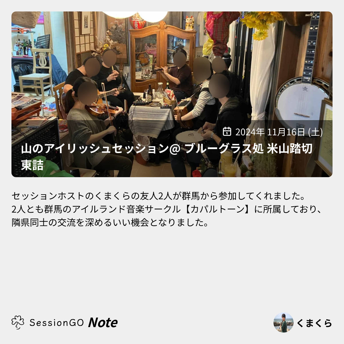 2人とも群馬のアイルランド音楽サークル【カパルトーン】に所属しており、隣県同士の交流を深めるいい機会となりました。